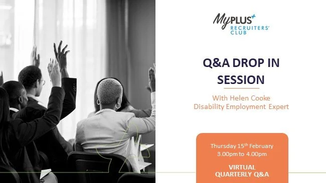 Helen, an expert in disability employment is available for an hour every quarter to answer adhoc questions related to the recruitment and employment of disabled individuals. Employer members can dial in at any point during the hour to ask questions or just join to listen to the discussions. The sessions provide a great opportunity to hear the types of questions, challenges and concerns other employers are facing and learn from the advice provided.