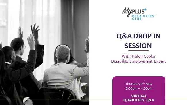 Helen, an expert in disability employment is available for an hour every quarter to answer adhoc questions related to the recruitment and employment of disabled individuals. Employer members can dial in at any point during the hour to ask questions or just join to listen to the discussions. The sessions provide a great opportunity to hear the types of questions, challenges and concerns other employers are facing and learn from the advice provided.